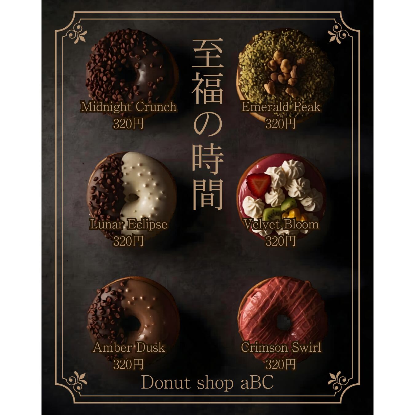 【Canva Pro(有料版)テンプレート】高級感のあるカフェ・ドーナツショップ向けチラシ&Instagram投稿セット|新商品・メニュー告知用