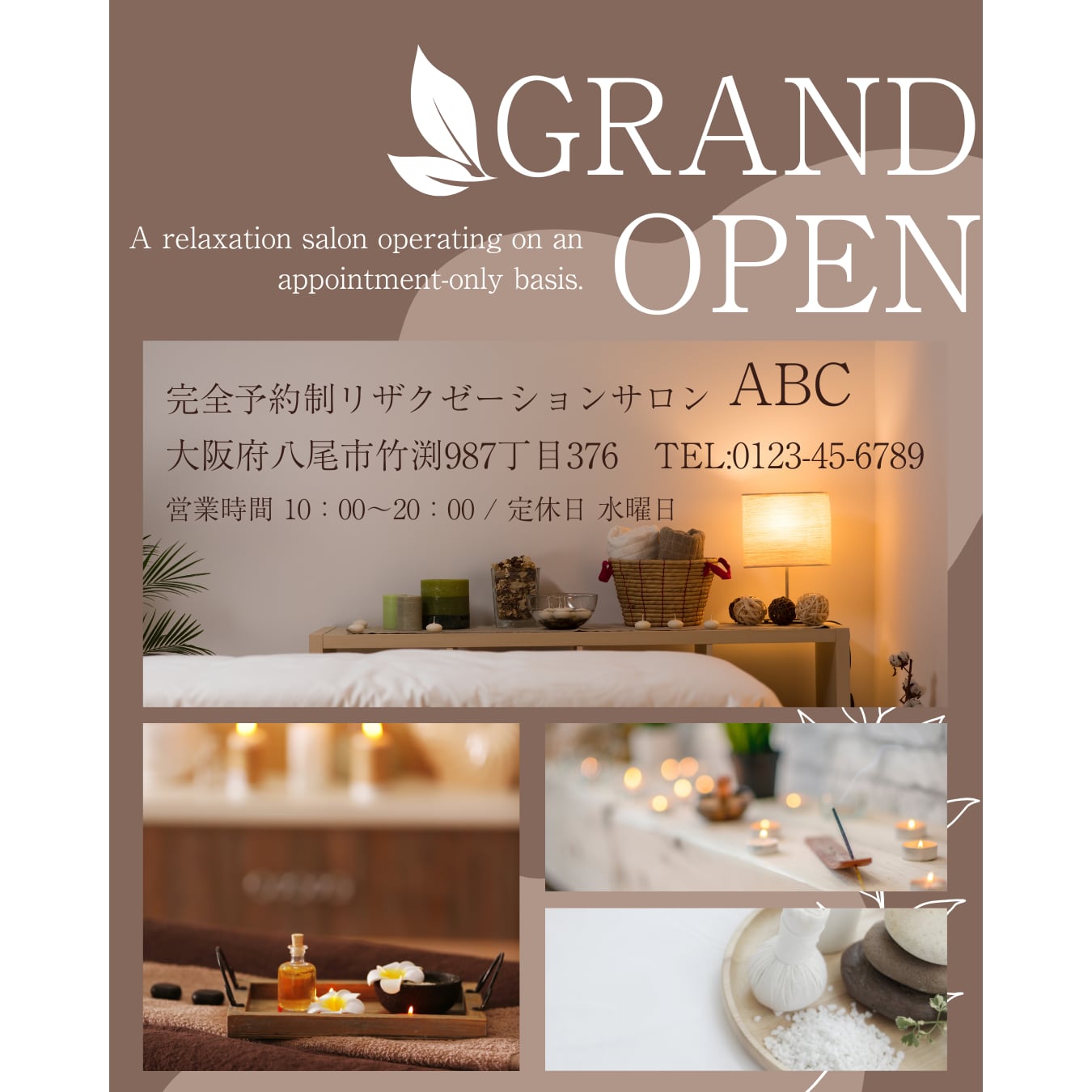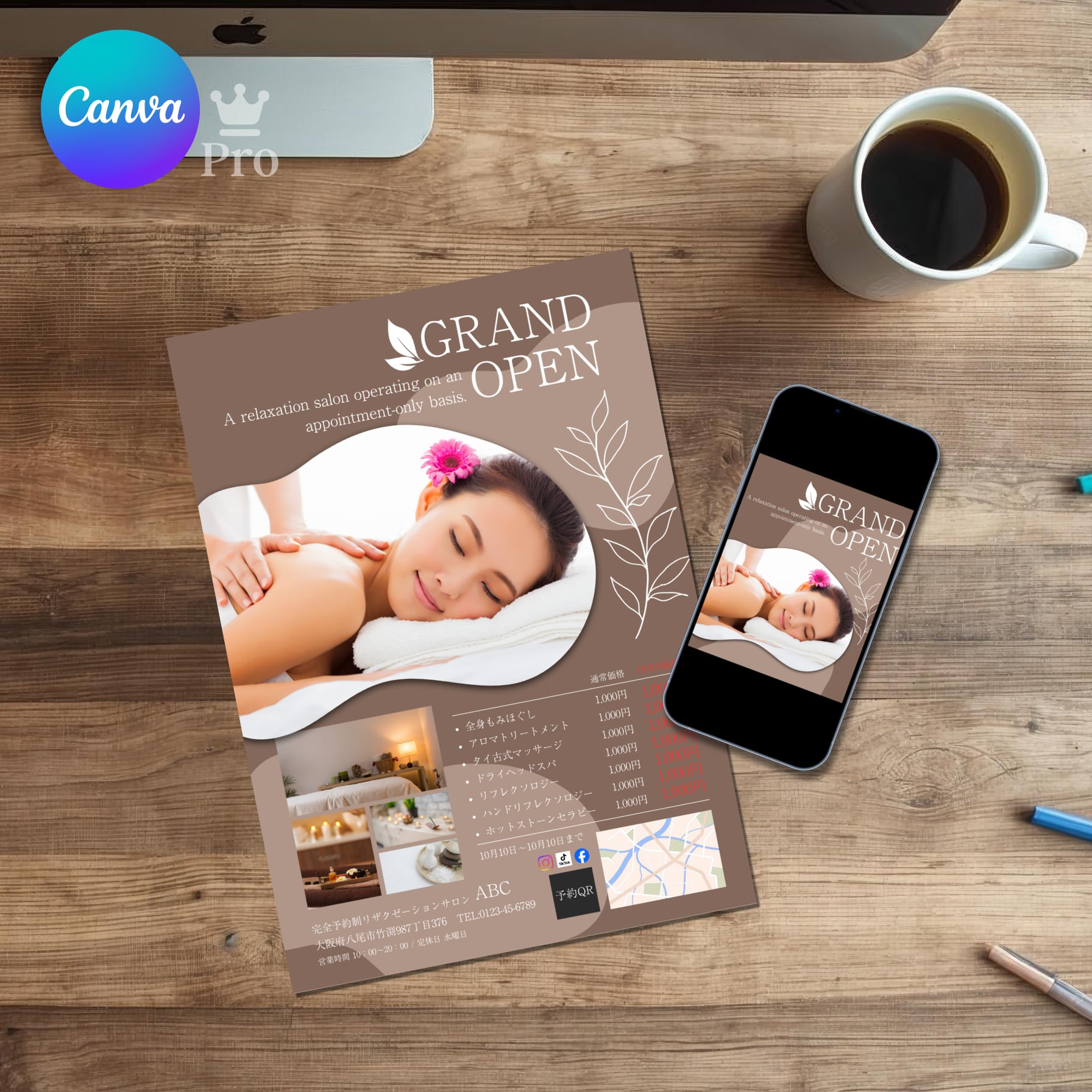 • スマホで簡単編集: ご自身のサロン写真への差し替えや、文言の修正もCanva上でスムーズに行えます。