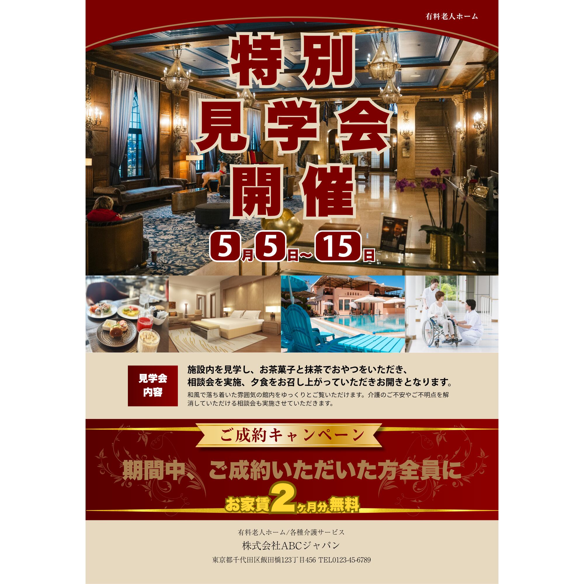 3 施設独自の写真、見学会の日程、キャンペーン詳細、連絡先を差し替えてご利用ください。