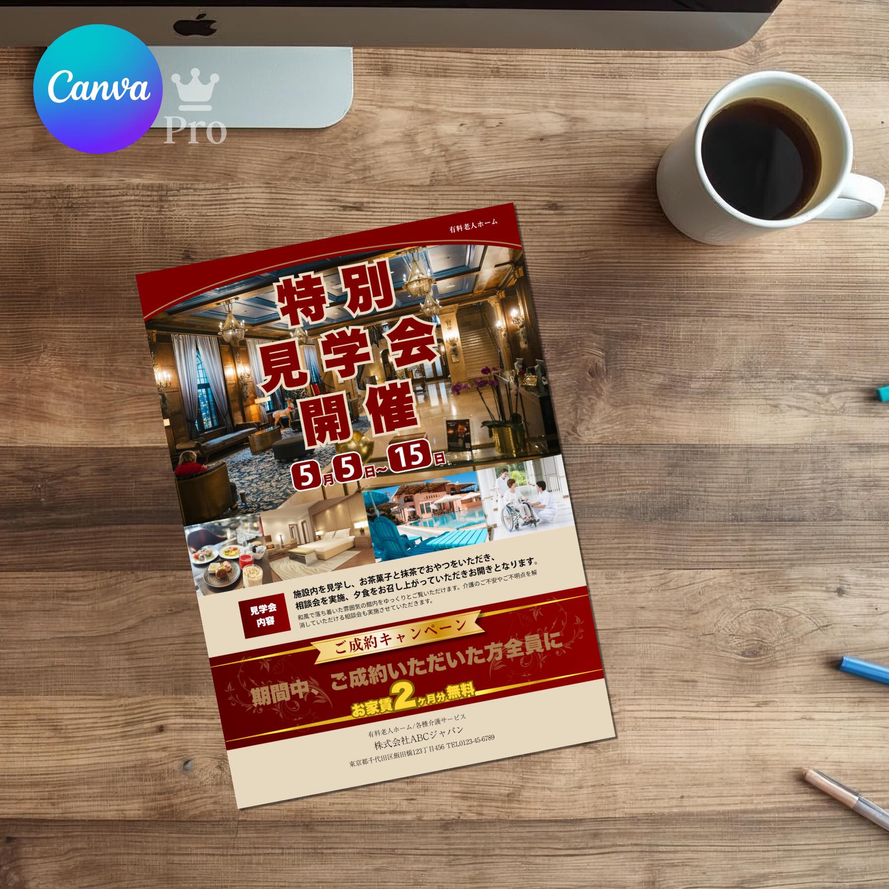#Canvaテンプレート #老人ホーム #介護施設 #施設集客 #見学会チラシ #ケアマネジャー #介護広報 #チラシデザイン