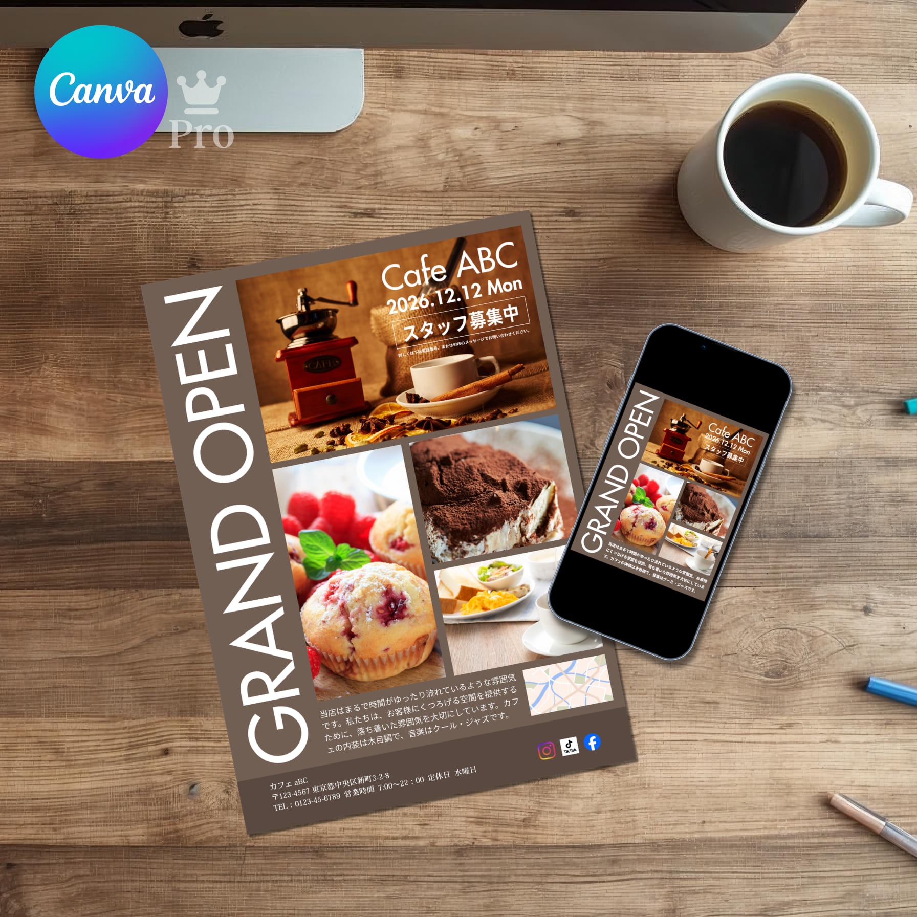 #Canvaテンプレート #カフェチラシ #オープン告知 #喫茶店デザイン #Instagramテンプレート #カフェ開業 #チラシデザイン #集客ツール #モダンデザイン